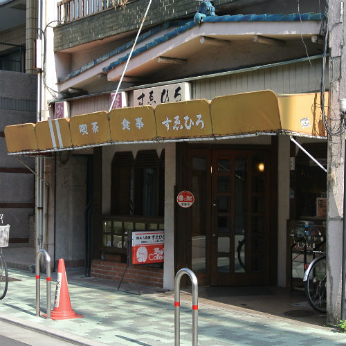す”るん”ひろ じゃなくて すえひろ、です さすがに間違えるひとはいないか 予想通りのレトロな店内 おっちゃんひとりでやってました サラリーマンのお客さんが くつろいでいらっしゃいます テレビでやってたのはNHK 壁の棚? ちょっとかわった造りです ホットコーヒー 300円 モーニングはバタートーストのみのシンプルなもので 価格がおさえられてます コーヒーの味は酸味がきいてた感じ 場所はここ↓