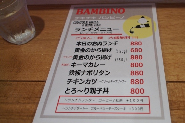 ランチの看板によるとハンバーグか唐揚げがおすすめ
