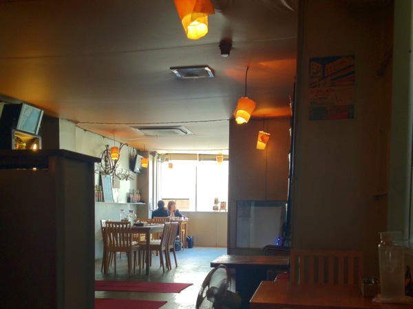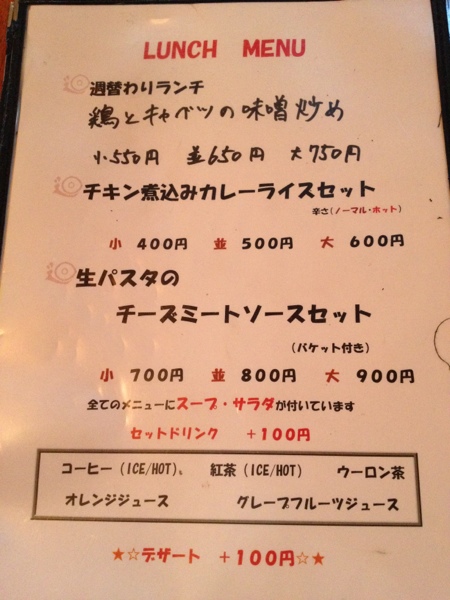 丸の内のダーツカフェへ行ってきました ダーツの機械が置いてありますが 時間がなくてできません カウンター 薄暗いかんじ ランチメニューです 豚とキャベツの味噌炒め 中華です 濃い味付けでした スープの器がへんです
