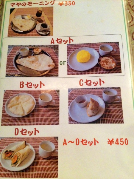 モーニングのメニュー