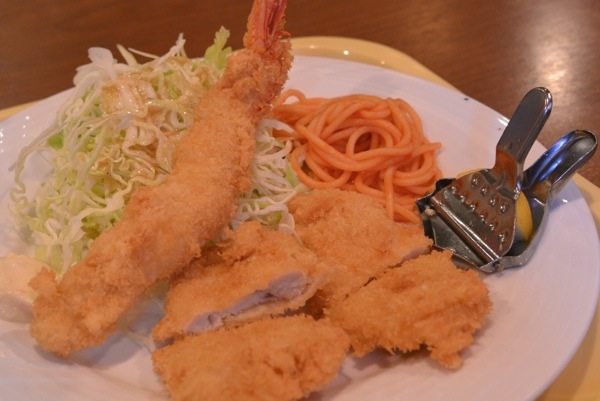 特大エビフライとチキンカツ 900円