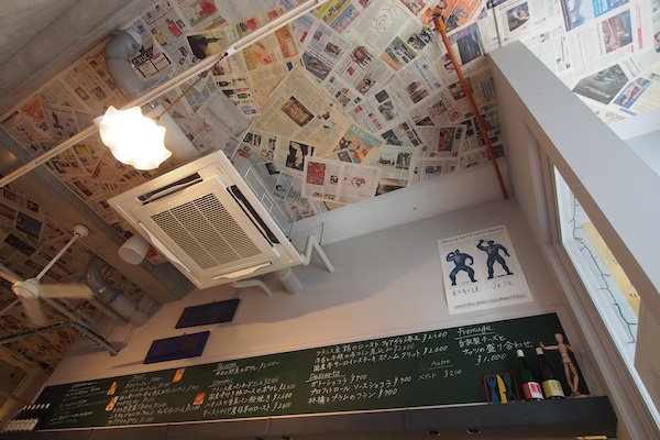 天井に新聞