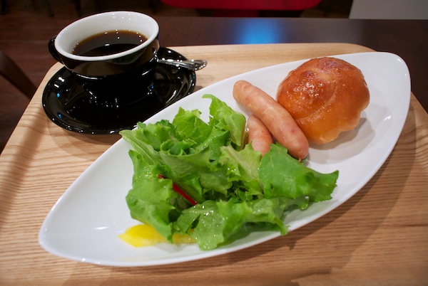 パンとソーセージ、サラダがついてます
